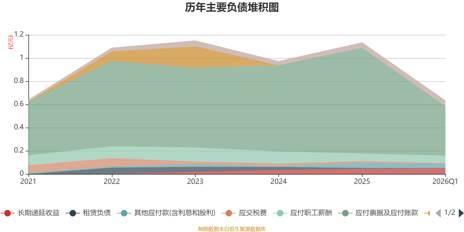负债重大变化方面,截至2026年一季度末,公司应付票据及应付账款较上年末减少53.33%,占公司总资产比重下降4.51个百分点;应交税费较上年末减少66.86%,占公司总资产比重下降0.09个百分点;长期递延收益较上年末增加12.26%,占公司总资产比重上升0.08个百分点;合同负债较上年末增加45.44%,占公司总资产比重上升0.07个百分点。