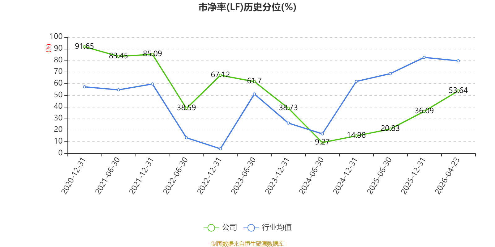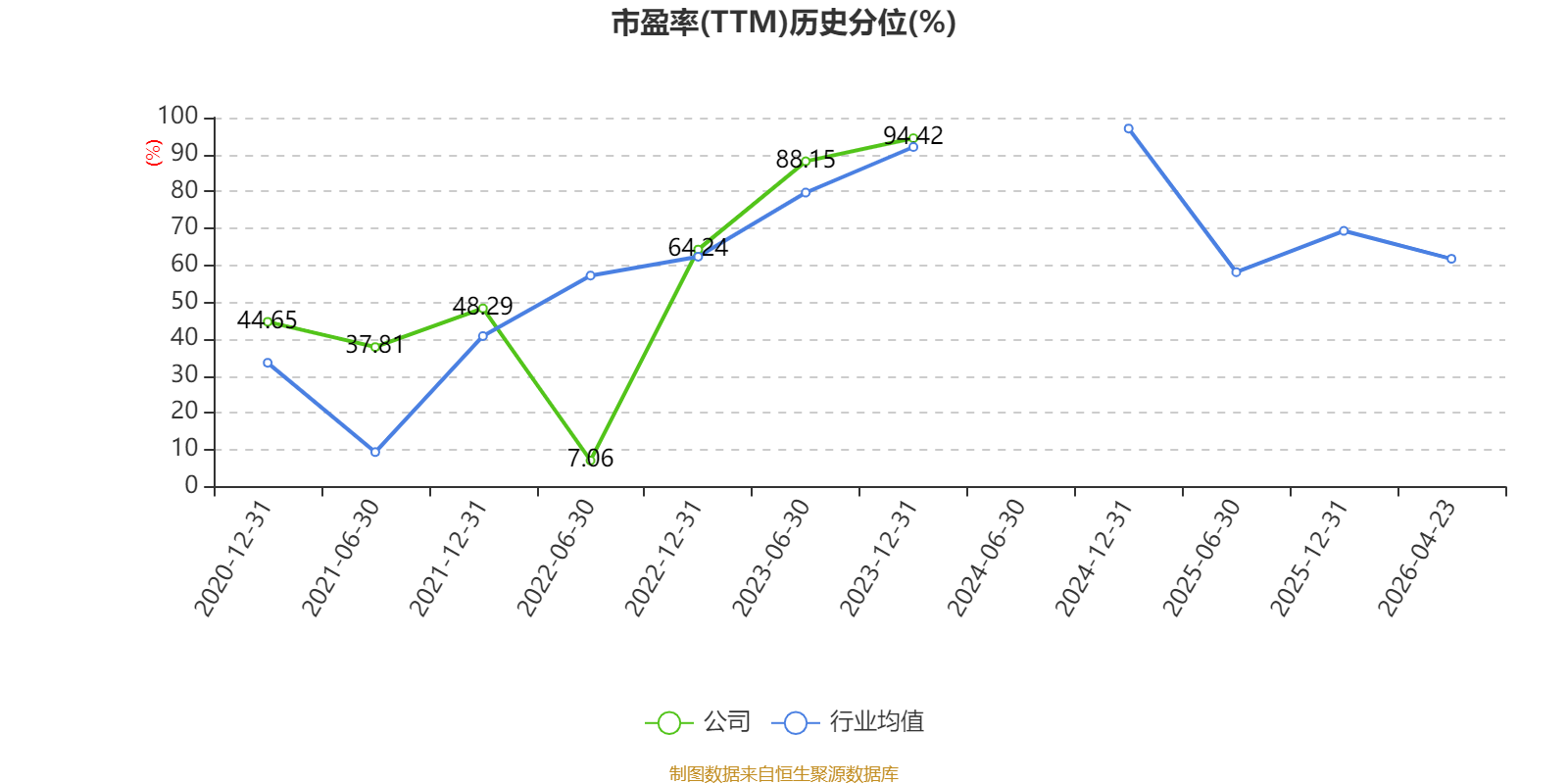 市盈率、市净率为负时,不显示当期分位数,会导致折线图中断。
