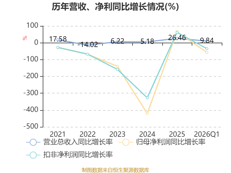 资产重大变化方面,截至2026年一季度末,公司应收票据及应收账款较上年末减少16.13%,占公司总资产比重下降2.73个百分点;存货较上年末增加7.82%,占公司总资产比重上升2.68个百分点;交易性金融资产合计较上年末增加6.25%,占公司总资产比重上升2.47个百分点;货币资金较上年末减少40.1%,占公司总资产比重下降2.28个百分点。