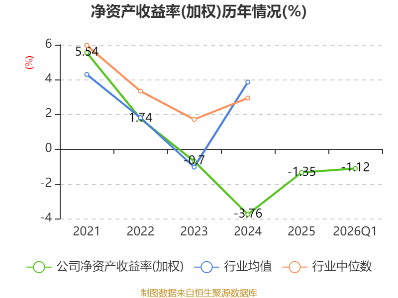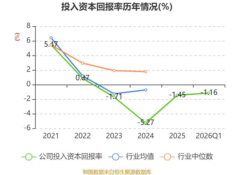 盈利能力方面, 2026年一季度公司加权平均净资产收益率为-1.12%,同比下降0.42个百分点。公司2026年第一季度投入资本回报率为-1.16%,较上年同期下降0.41个百分点。