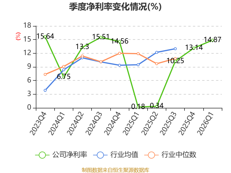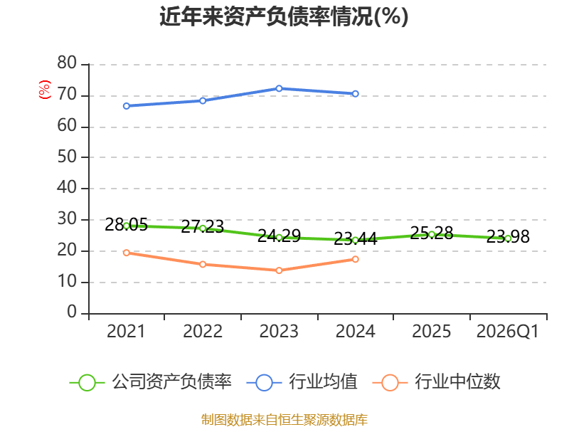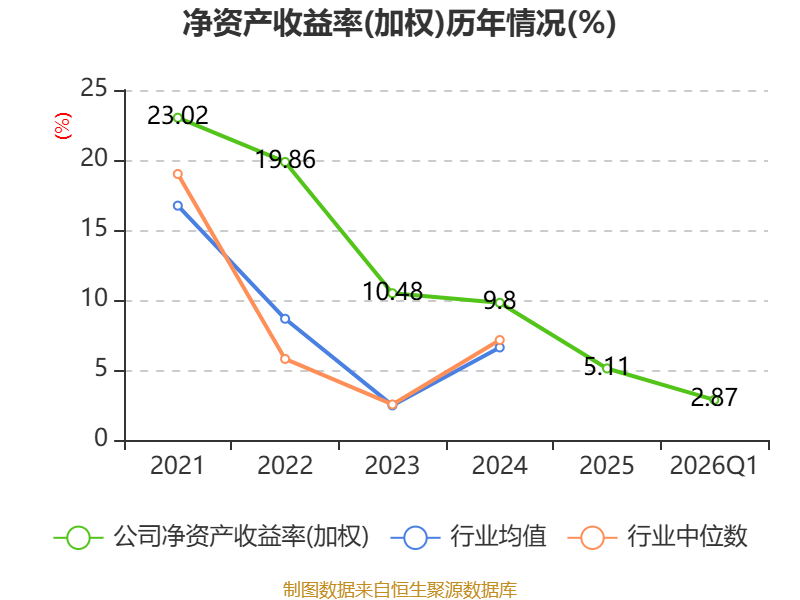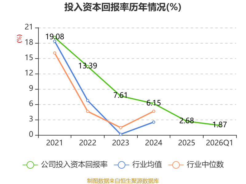 盈利能力方面, 2026年一季度公司加权平均净资产收益率为2.87%,同比上升2.34个百分点。公司2026年第一季度投入资本回报率为1.87%,较上年同期上升1.84个百分点。