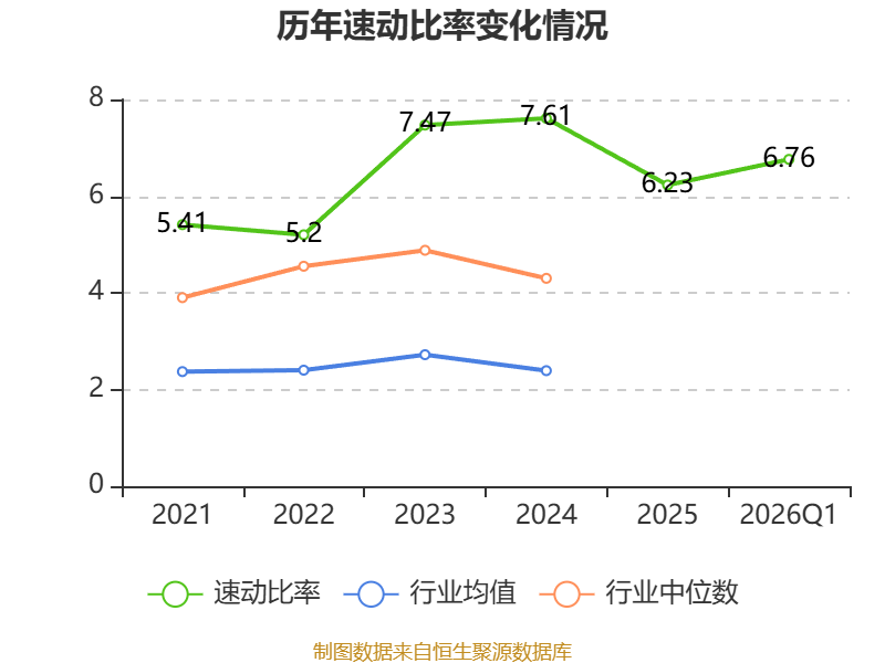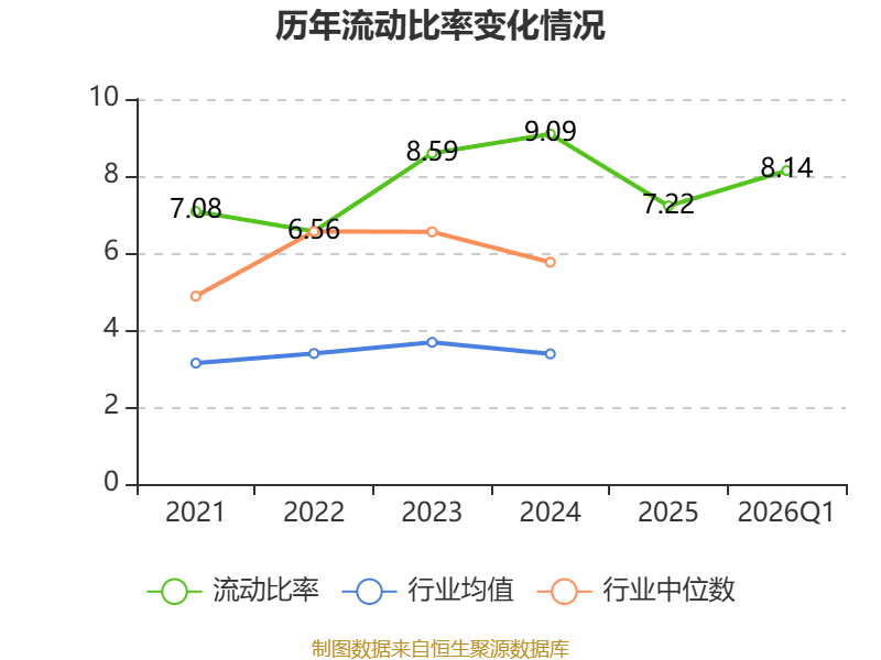 2026年第一季度,公司流动比率为8.14,速动比率为6.76。