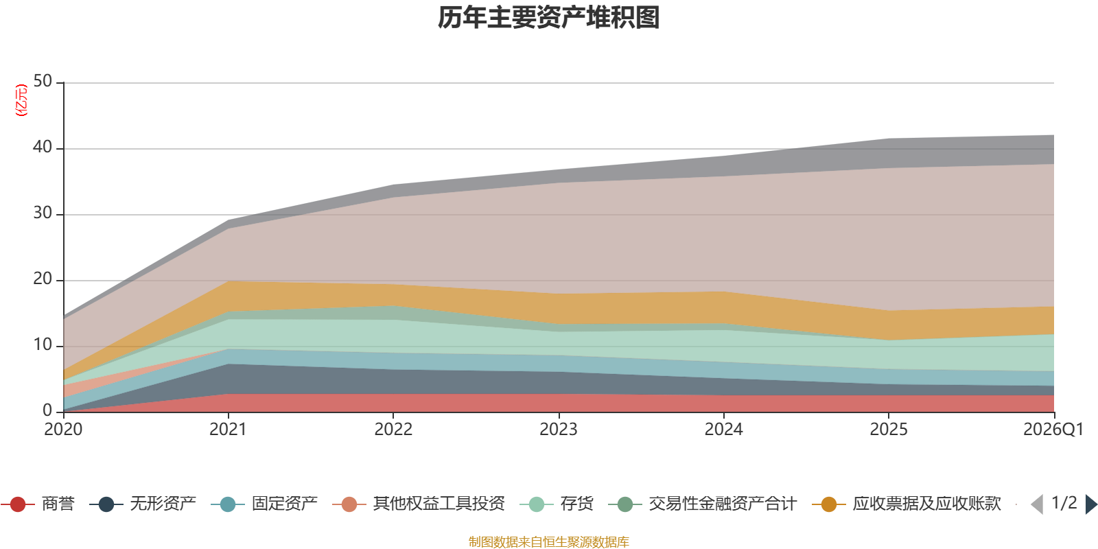 资产重大变化方面,截至2026年一季度末,公司存货较上年末增加28.28%,占公司总资产比重上升2.82个百分点;预付款项较上年末减少35.23%,占公司总资产比重下降1.11个百分点;应收款项融资较上年末增加162.14%,占公司总资产比重上升0.98个百分点;应收票据及应收账款较上年末减少6.38%,占公司总资产比重下降0.82个百分点。