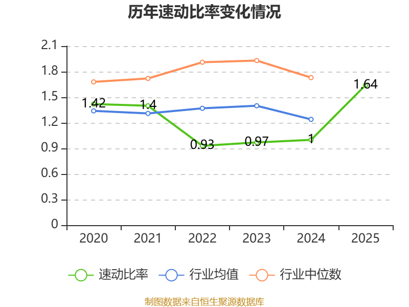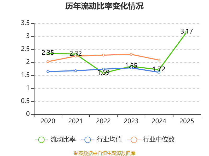 2025年,公司流动比率为3.17,速动比率为1.64。