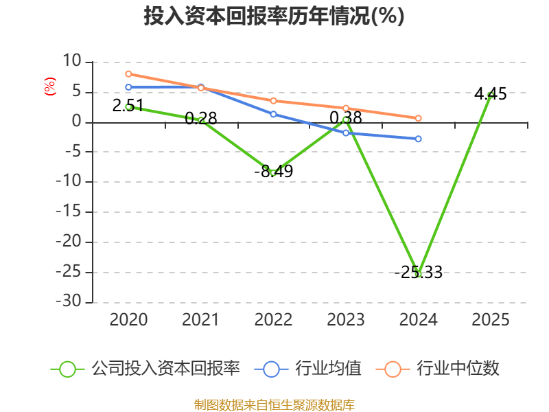 数据显示,2025年公司加权平均净资产收益率为4.93%,较上年同期上升39.39个百分点。公司2025年投入资本回报率为4.45%,较上年同期上升29.78个百分点。