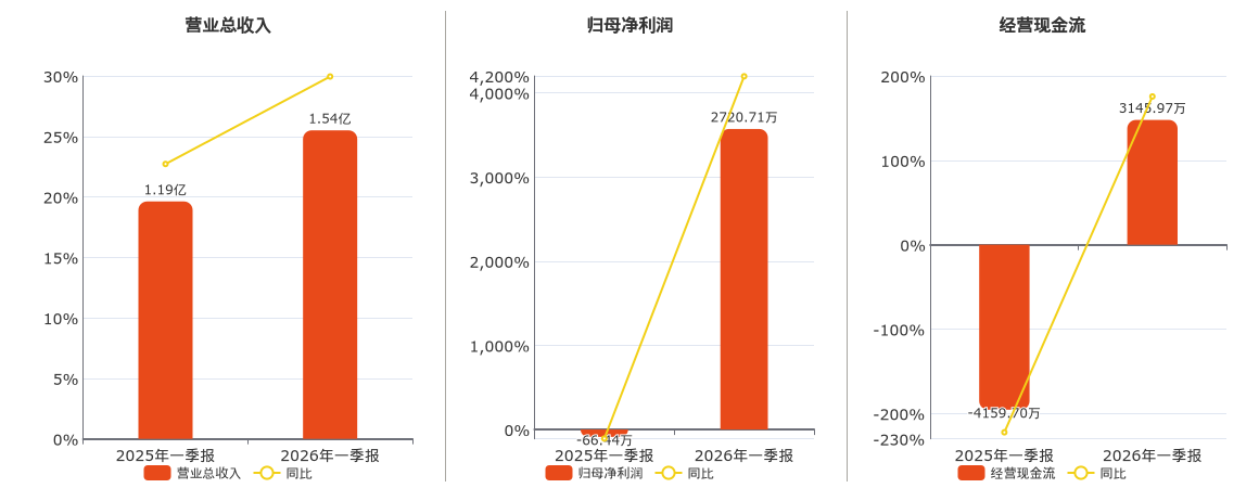 公司营业总收入为1.54亿元。归母净利润为2720.71万元。经营活动现金净流入为3145.97万元。