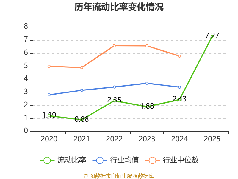 2025年,公司流动比率为7.27,速动比率为6.65。