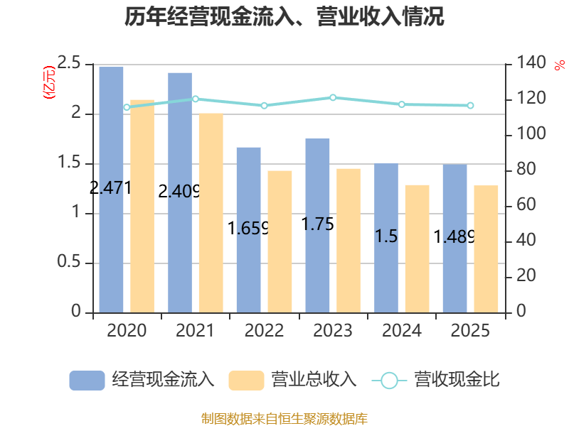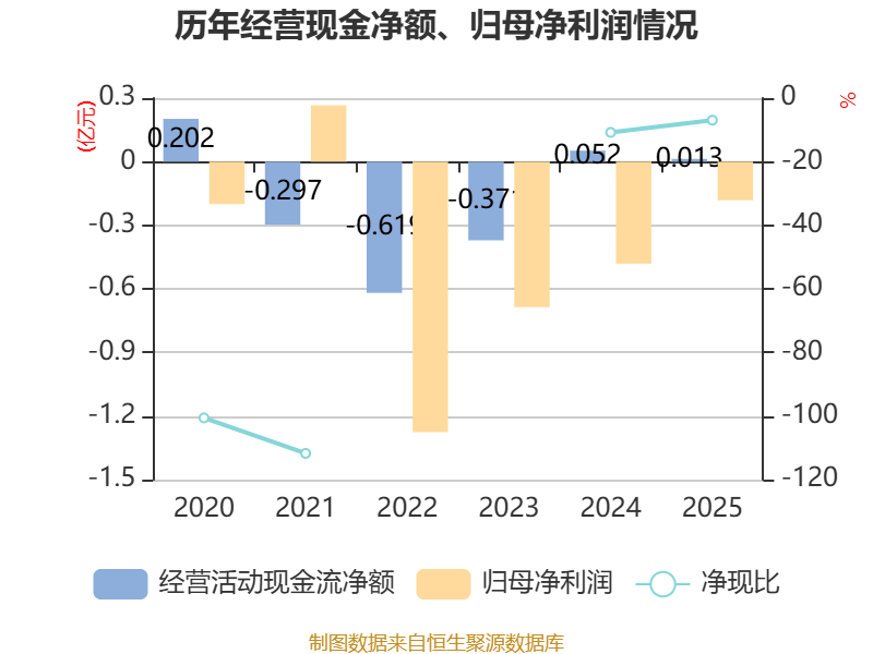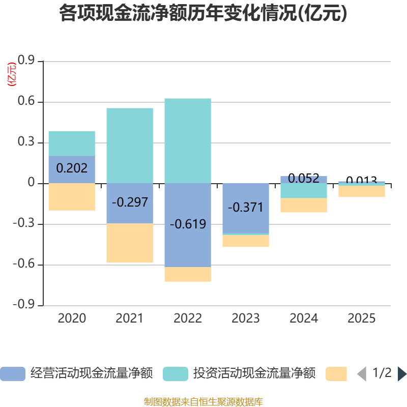 截至2025年,公司经营活动现金流净额为126.14万元,同比下降75.7%;筹资活动现金流净额-816万元,同比增加226.73万元;投资活动现金流净额-185.1万元,上年同期为-1111.68万元。
