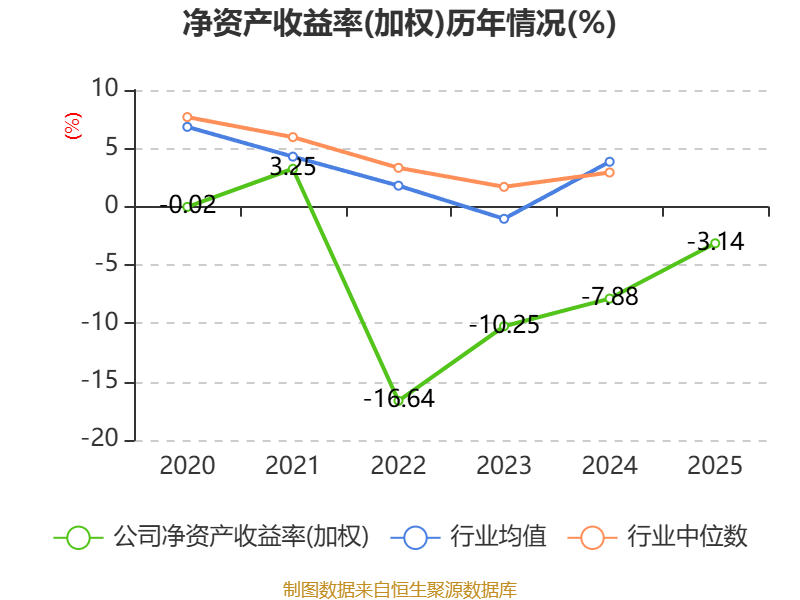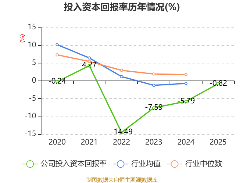 数据显示,2025年公司加权平均净资产收益率为-3.14%,较上年同期上升4.74个百分点。公司2025年投入资本回报率为-0.82%,较上年同期上升4.97个百分点。