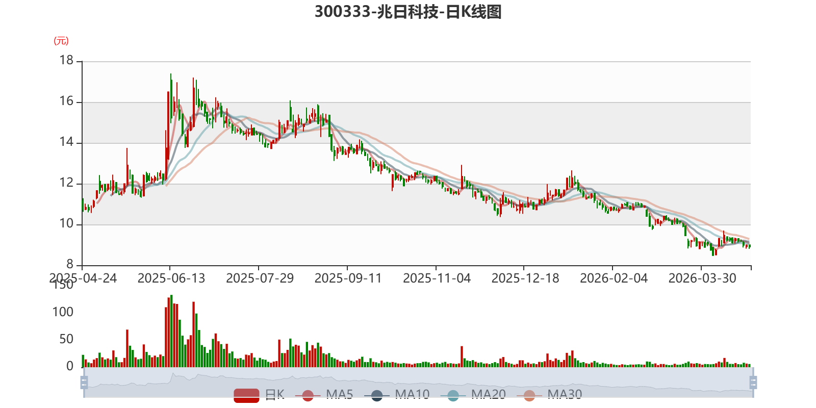 以4月23日收盘价计算,兆日科技目前市盈率(TTM)约为-164.71倍,市净率(LF)约5.26倍,市销率(TTM)约23.41倍。