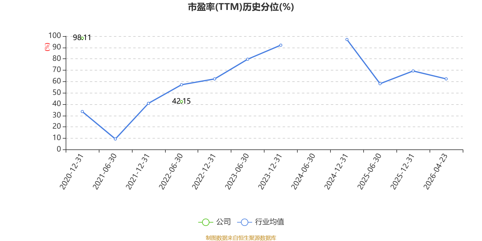 市盈率、市净率为负时,不显示当期分位数,会导致折线图中断。