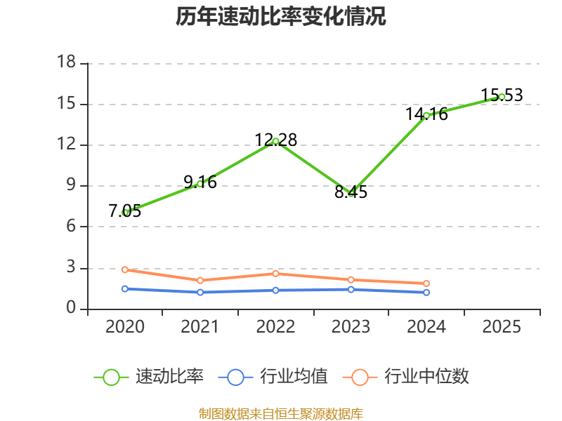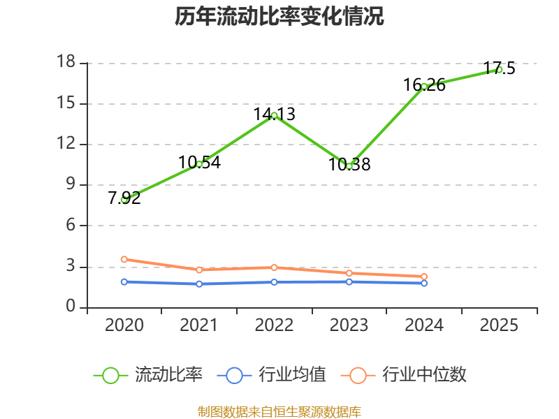 2025年,公司流动比率为17.5,速动比率为15.53。
