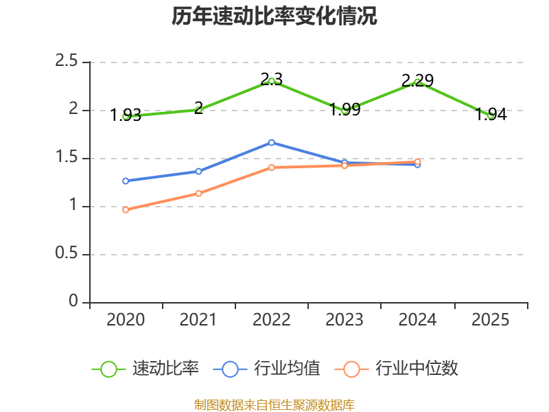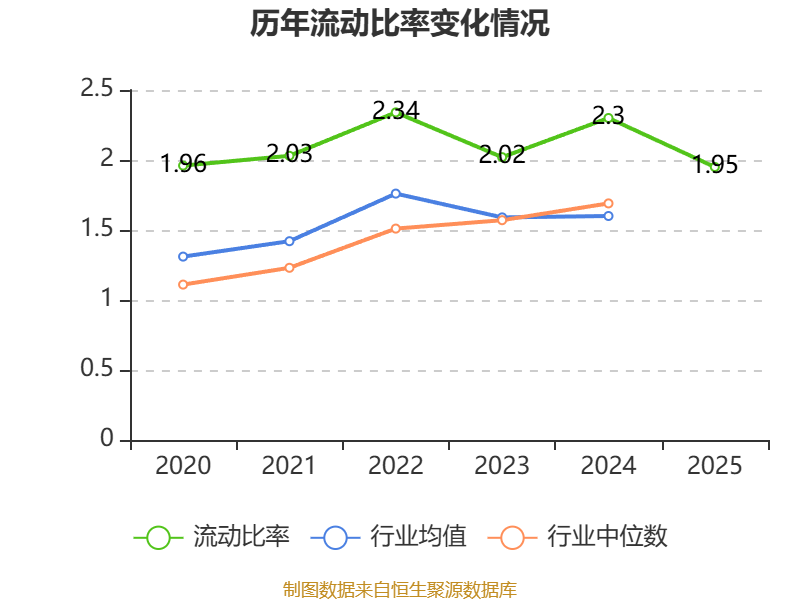 2025年,公司流动比率为1.95,速动比率为1.94。