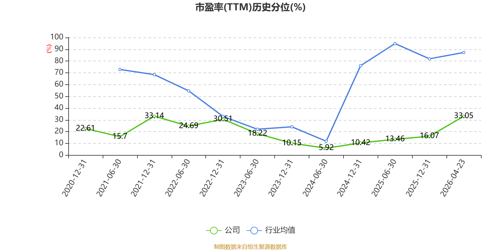 市盈率、市净率为负时,不显示当期分位数,会导致折线图中断。