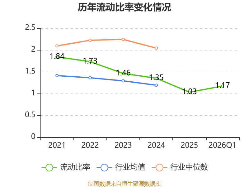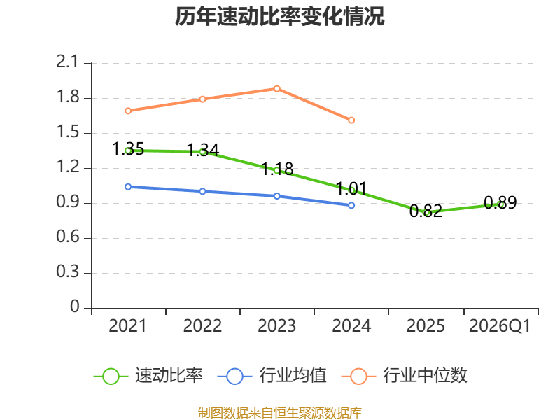 2026年第一季度,公司流动比率为1.17,速动比率为0.89。