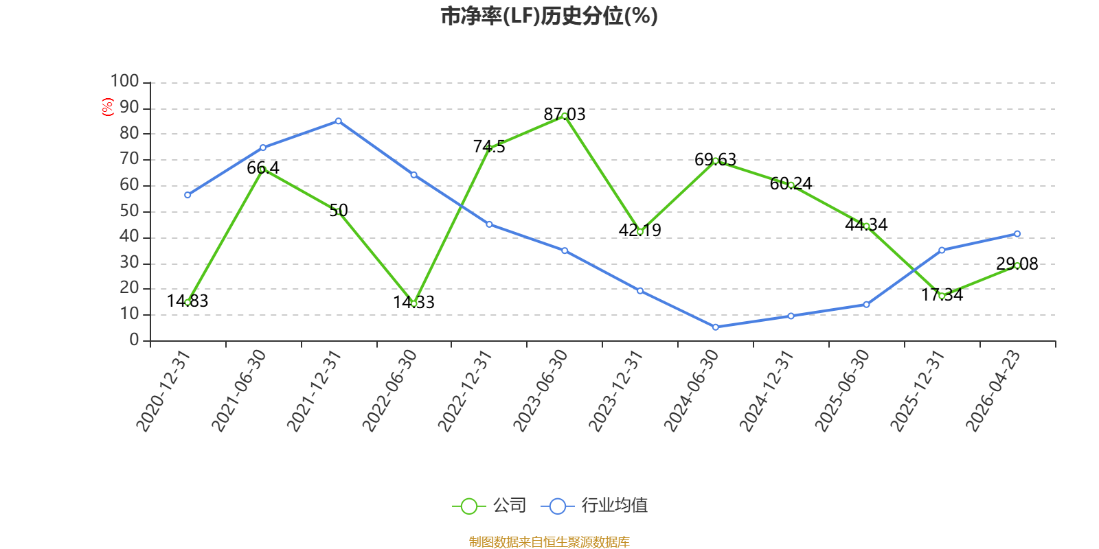 市盈率、市净率为负时,不显示当期分位数,会导致折线图中断。
