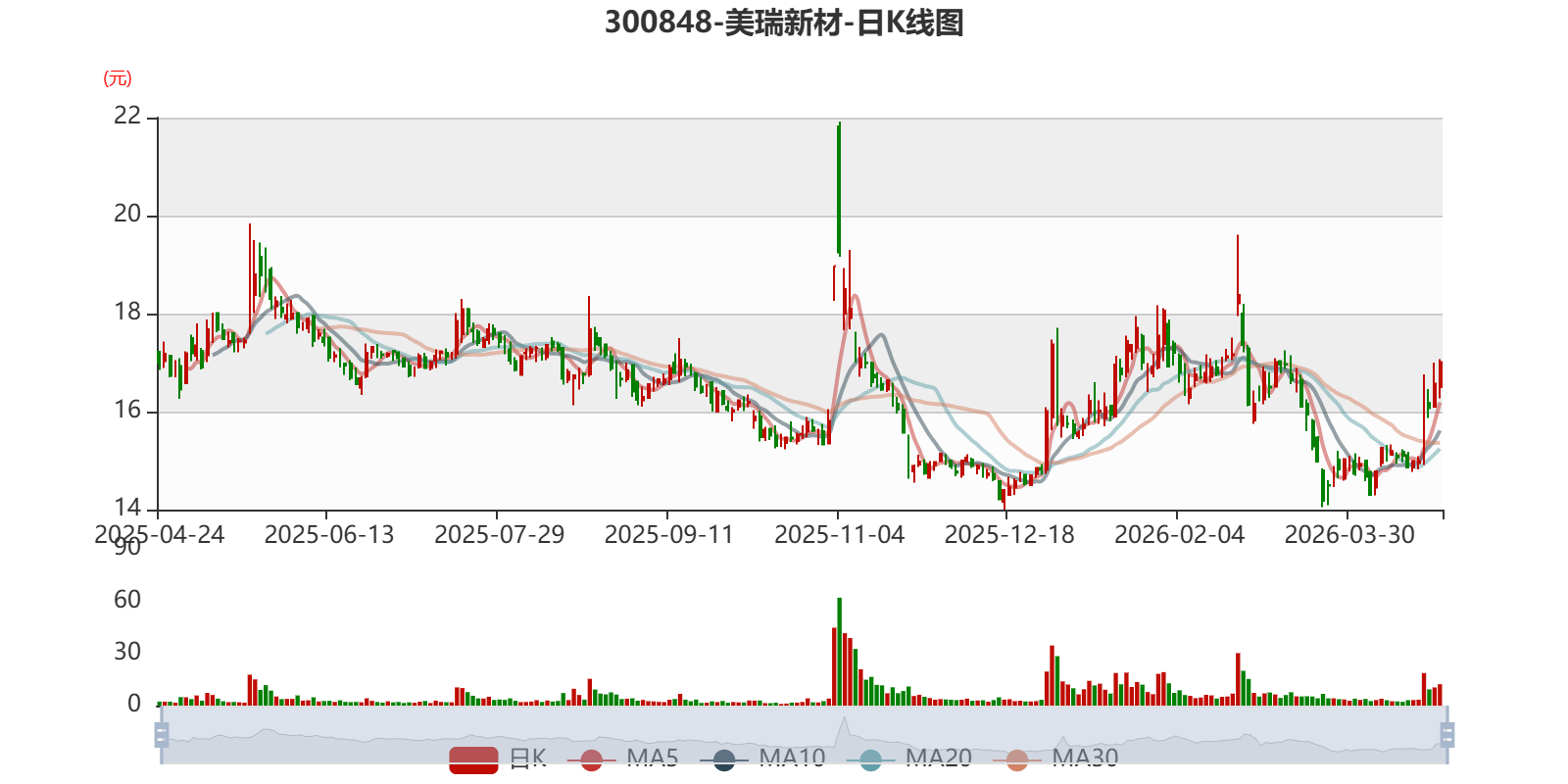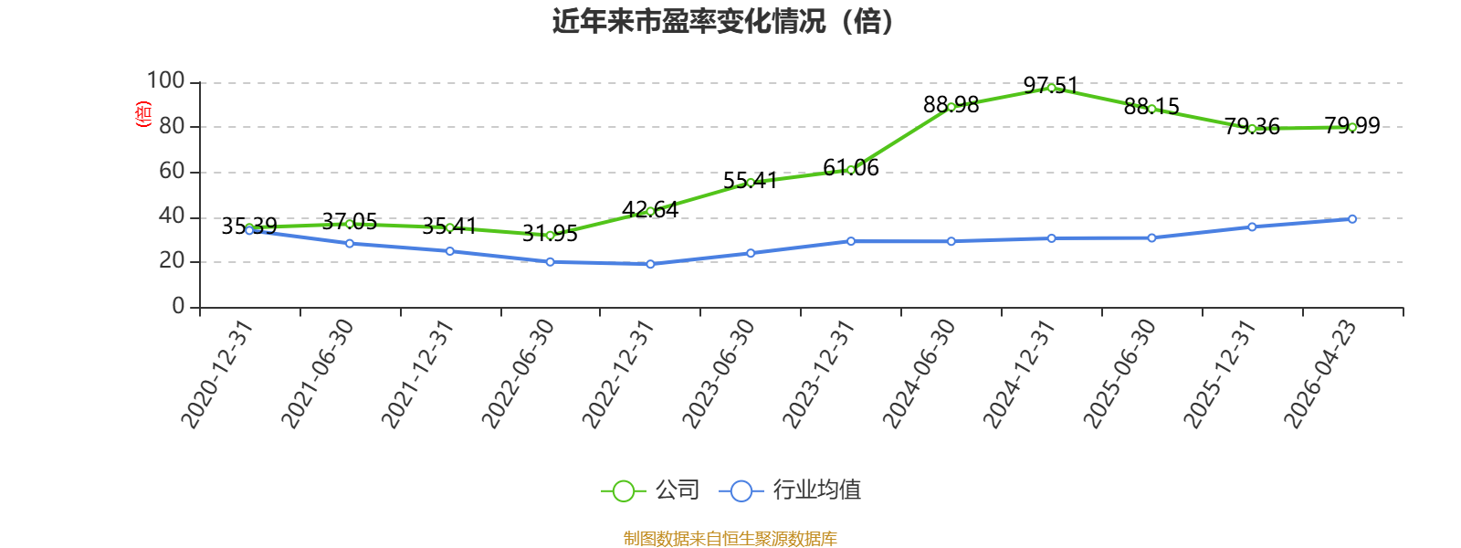 以4月23日收盘价计算,美瑞新材目前市盈率(TTM)约为79.99倍,市净率(LF)约4.67倍,市销率(TTM)约3.77倍。