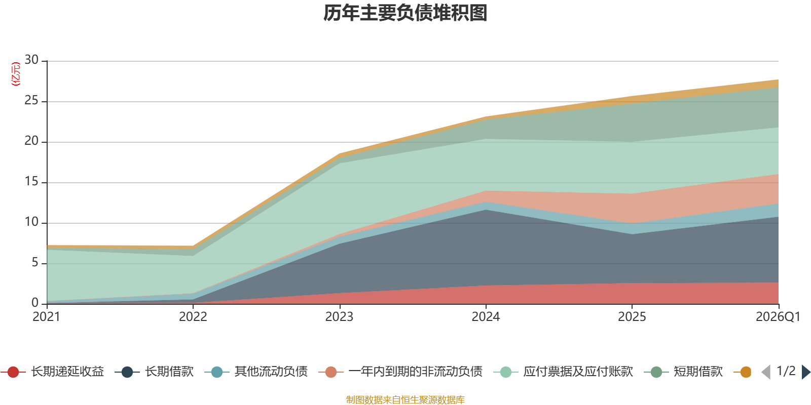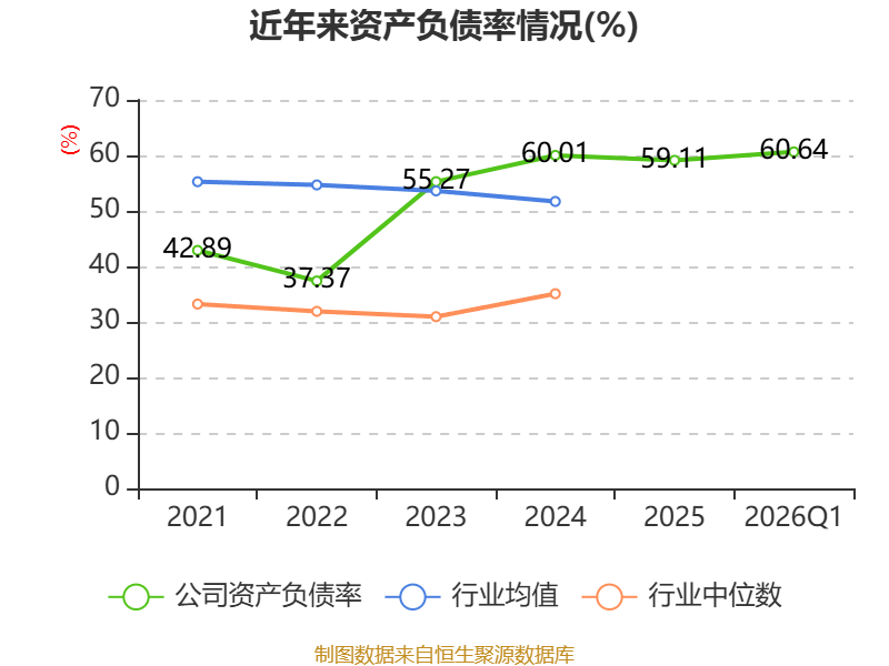 负债重大变化方面,截至2026年一季度末,公司长期借款较上年末增加34.67%,占公司总资产比重上升3.88个百分点;应付票据及应付账款较上年末减少10.15%,占公司总资产比重下降2.16个百分点;其他流动负债较上年末增加22.92%,占公司总资产比重上升0.52个百分点;一年内到期的非流动负债较上年末减少0.82%,占公司总资产比重下降0.49个百分点。
