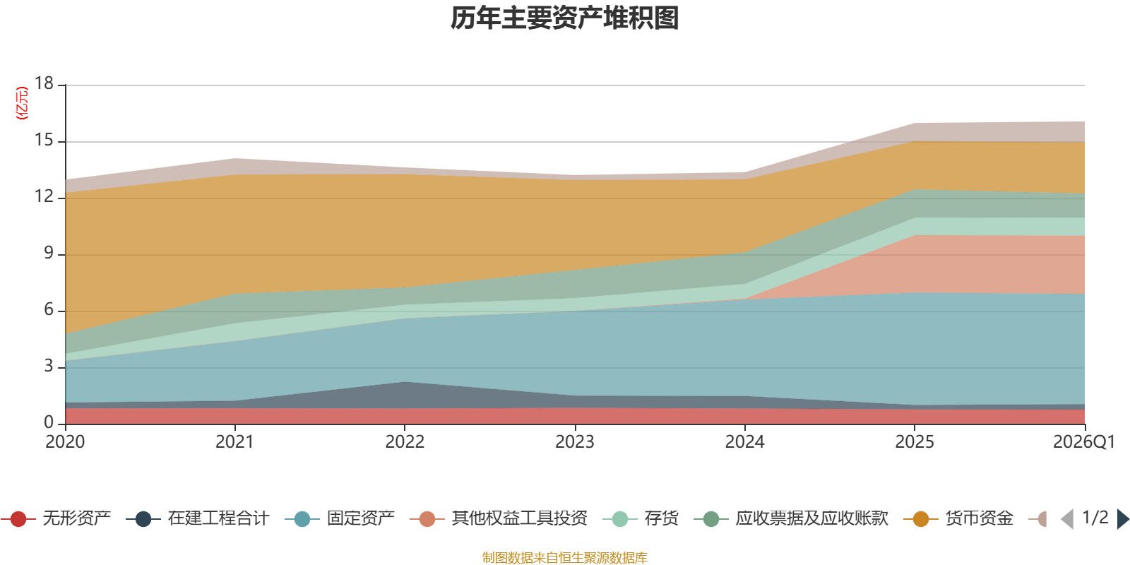 资产重大变化方面,截至2026年一季度末,公司应收票据及应收账款较上年末减少16%,占公司总资产比重下降1.57个百分点;货币资金较上年末增加6.47%,占公司总资产比重上升0.94个百分点;固定资产较上年末减少1.91%,占公司总资产比重下降0.93个百分点;交易性金融资产合计较上年末增加29.41%,占公司总资产比重上升0.92个百分点。