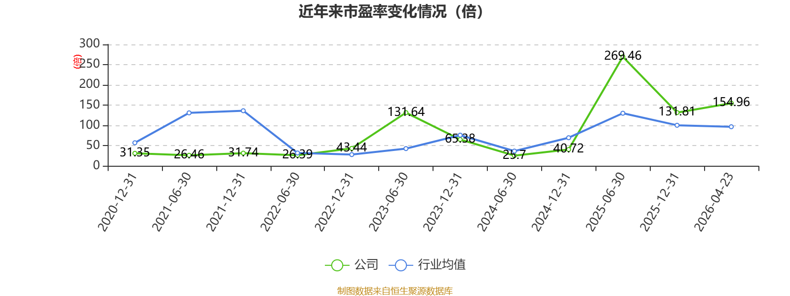 以4月23日收盘价计算,润阳科技目前市盈率(TTM)约为154.96倍,市净率(LF)约3.31倍,市销率(TTM)约9.4倍。