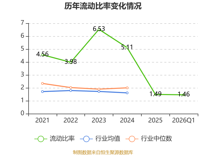 2026年第一季度,公司流动比率为1.46,速动比率为1.22。