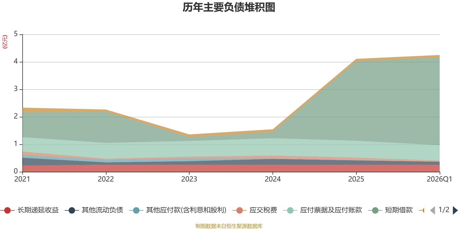 负债重大变化方面,截至2026年一季度末,公司短期借款较上年末增加10.36%,占公司总资产比重上升1.77个百分点;应交税费较上年末减少62.43%,占公司总资产比重下降0.35个百分点;应付票据及应付账款较上年末减少8.22%,占公司总资产比重下降0.34个百分点;其他流动负债较上年末减少32.58%,占公司总资产比重下降0.31个百分点。