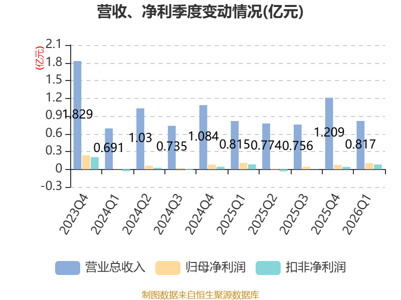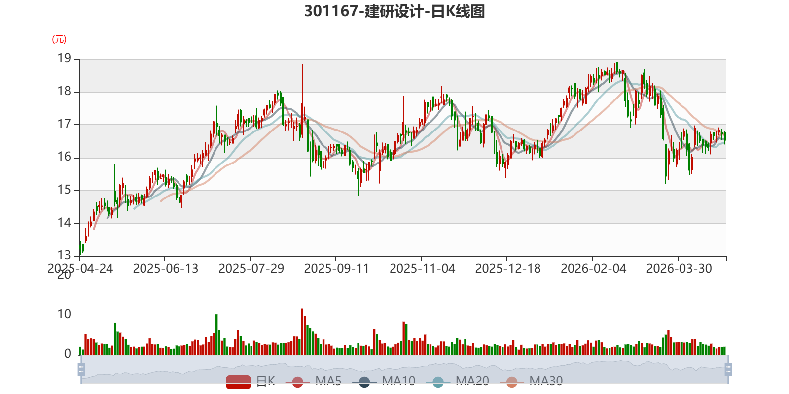 中证智能财讯建研设计(301167)4月24日披露2026年第一季度报告。公司实现营业总收入8171.02万元,同比增长0.29%;归母净利润1034.53万元,同比下降4.30%;扣非净利润808.21万元,同比下降2.61%;经营活动产生的现金流量净额为-3793.57万元,上年同期为-1151.45万元;报告期内,建研设计基本每股收益为0.0924元,加权平均净资产收益率为1.08%。