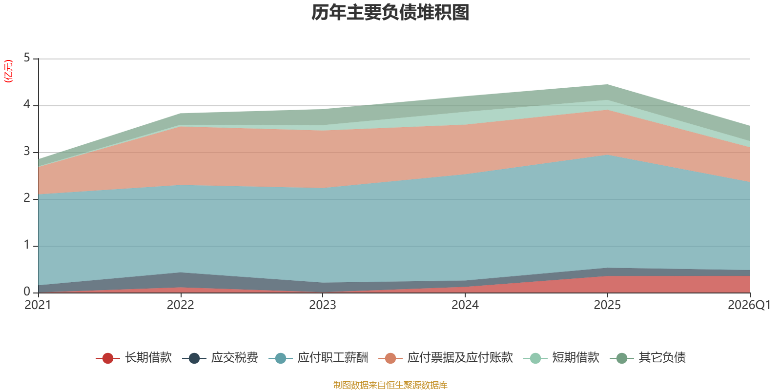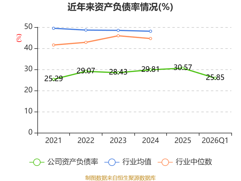 负债重大变化方面,截至2026年一季度末,公司应付职工薪酬较上年末减少22.02%,占公司总资产比重下降2.94个百分点;应付票据及应付账款较上年末减少22.69%,占公司总资产比重下降1.22个百分点;短期借款较上年末减少37.96%,占公司总资产比重下降0.5个百分点;应交税费较上年末减少30.01%,占公司总资产比重下降0.32个百分点。