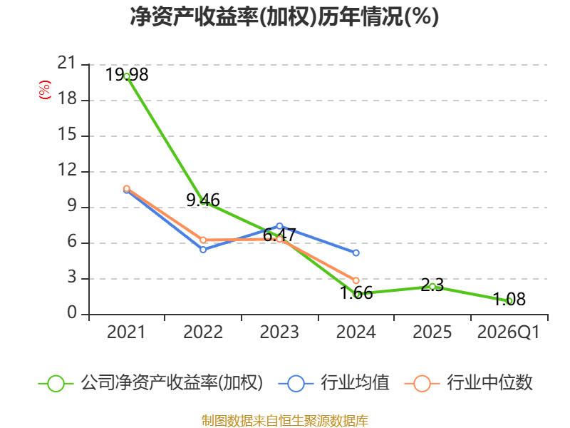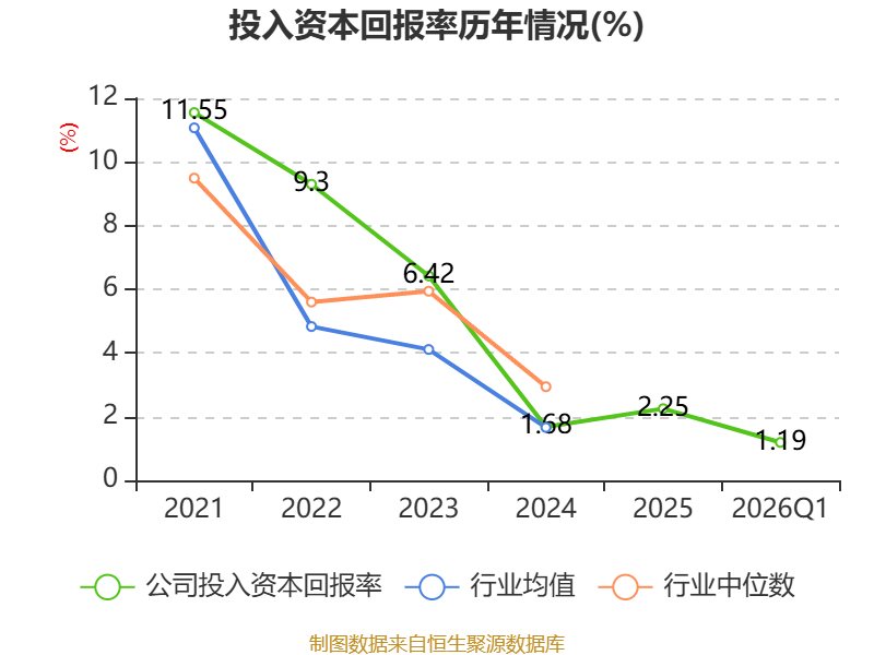 盈利能力方面, 2026年一季度公司加权平均净资产收益率为1.08%,同比下降0.07个百分点。公司2026年第一季度投入资本回报率为1.19%,较上年同期上升0.11个百分点。