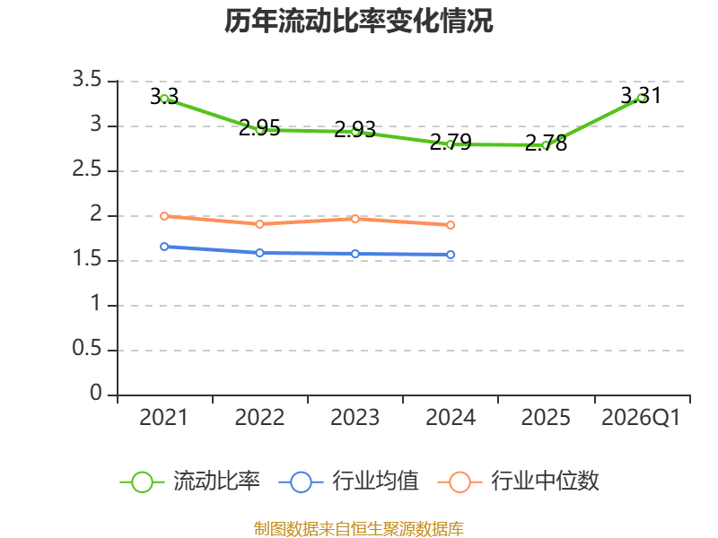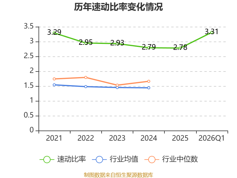 2026年第一季度,公司流动比率为3.31,速动比率为3.31。