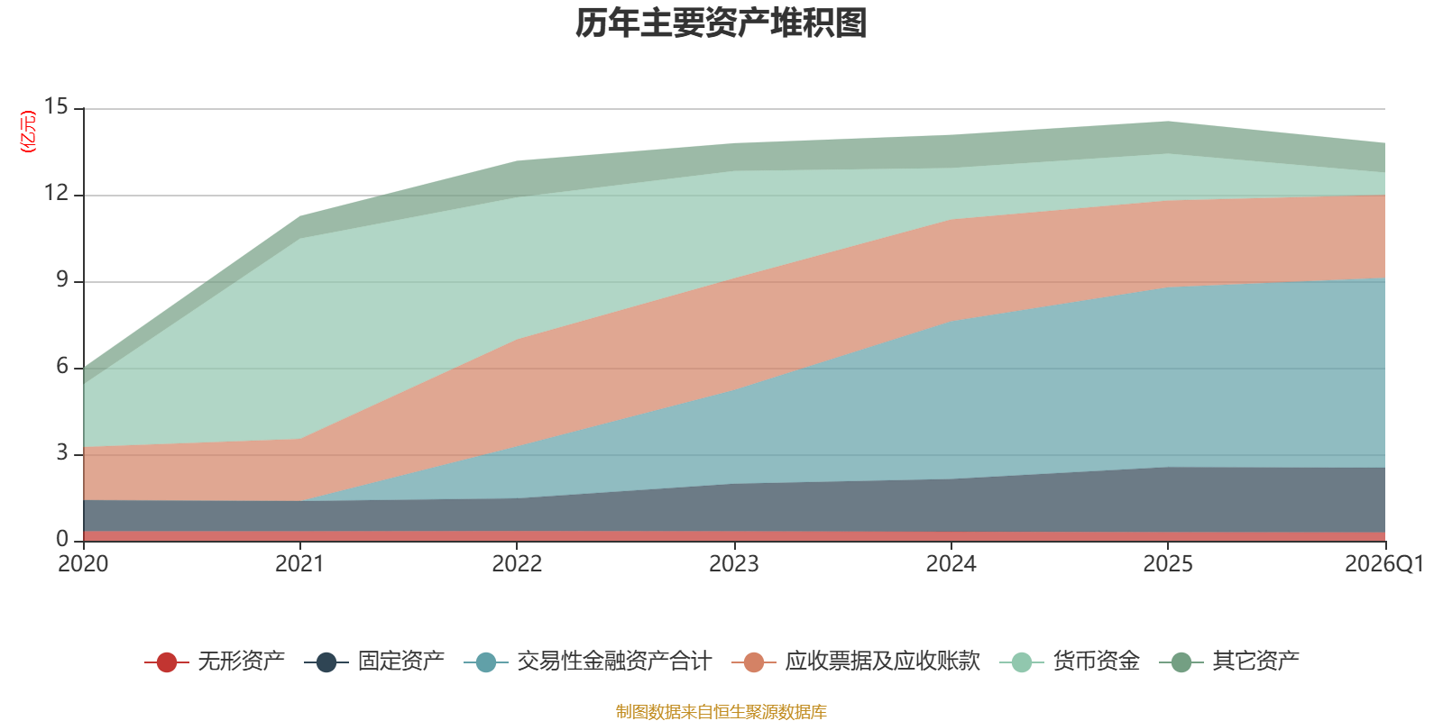 资产重大变化方面,截至2026年一季度末,公司货币资金较上年末减少52.55%,占公司总资产比重下降5.58个百分点;交易性金融资产合计较上年末增加5.72%,占公司总资产比重上升4.94个百分点;合同资产较上年末减少64.22%,占公司总资产比重下降0.98个百分点;固定资产较上年末减少0.75%,占公司总资产比重上升0.73个百分点。
