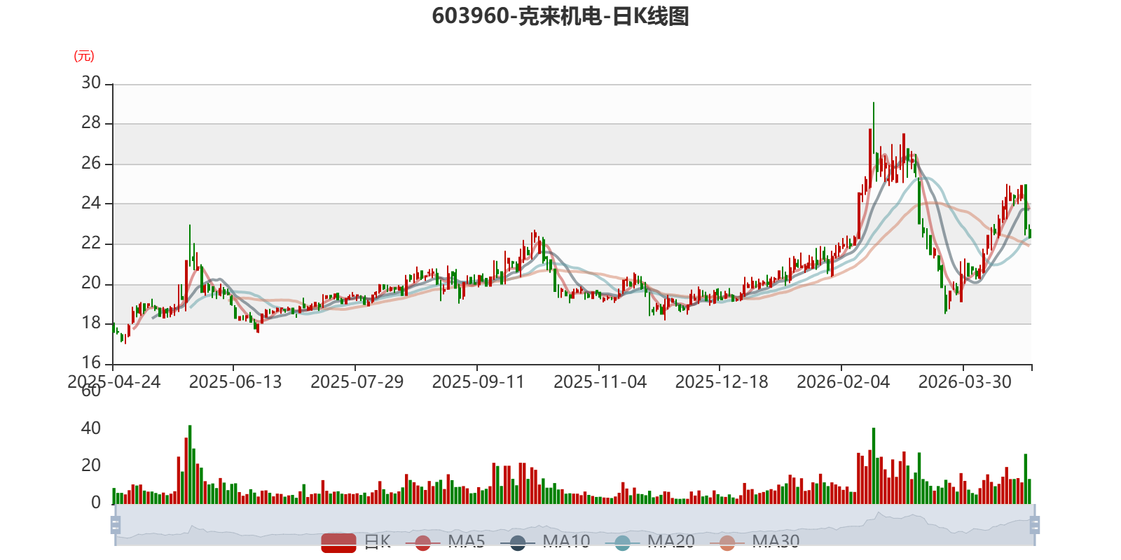 以4月23日收盘价计算,克来机电目前市盈率(TTM)约为276.26倍,市净率(LF)约5.2倍,市销率(TTM)约11.97倍。