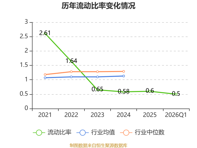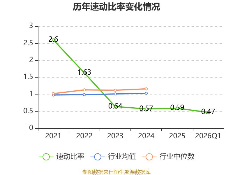 2026年第一季度,公司流动比率为0.5,速动比率为0.47。