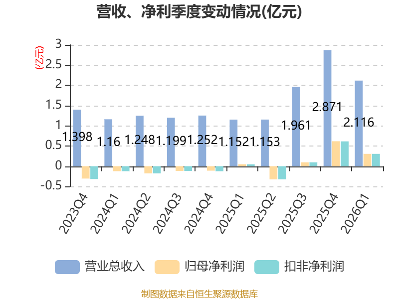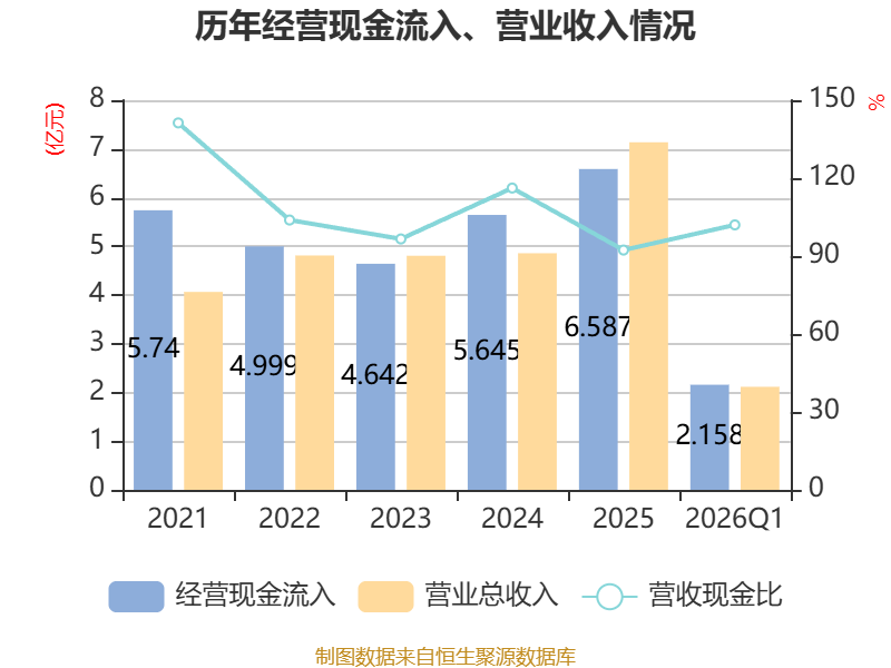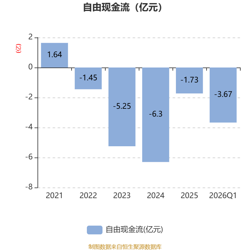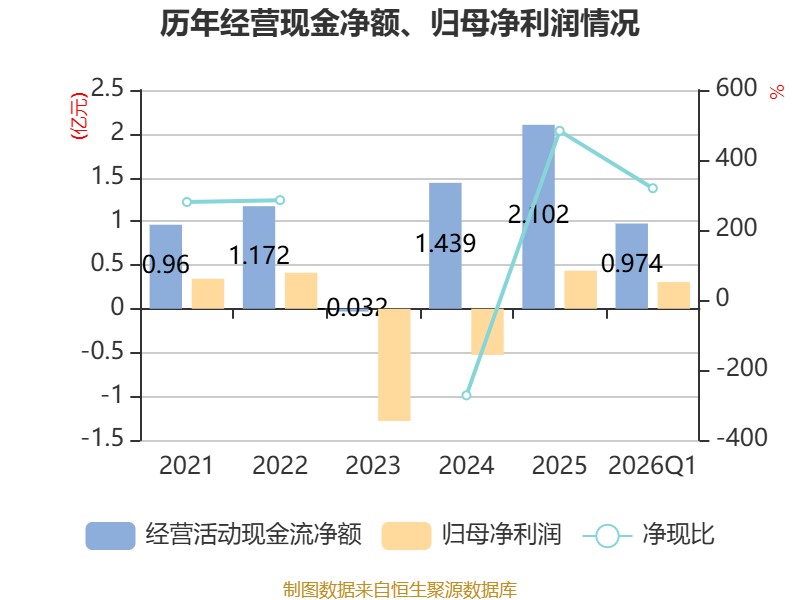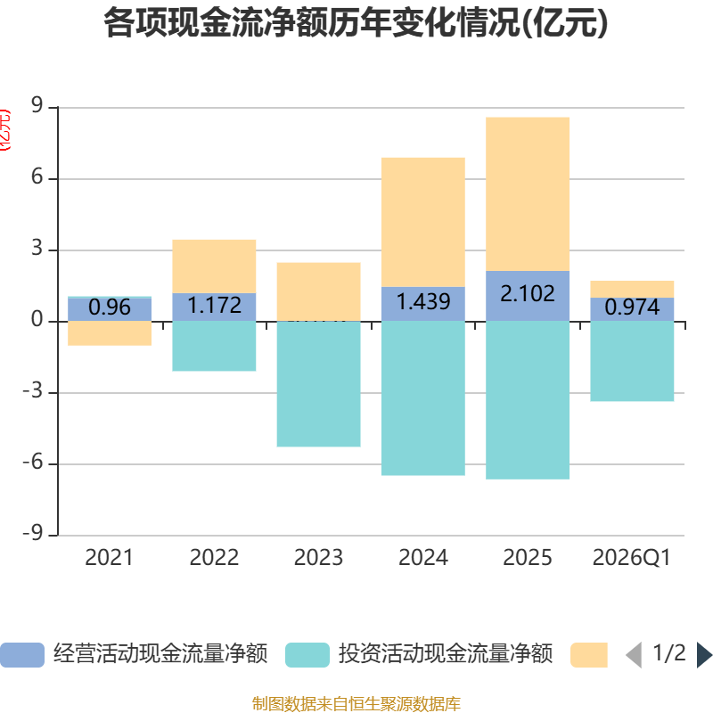 截至2026年一季度末,公司经营活动现金流净额为9738.99万元,同比增长261.4%;筹资活动现金流净额7141.49万元,同比增加2766.53万元;投资活动现金流净额-3.39亿元,上年同期为-1.02亿元。