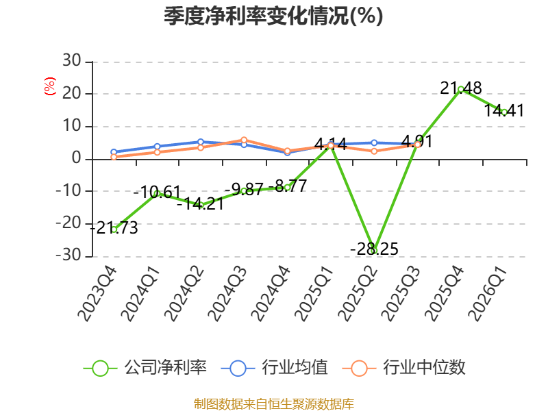 负债重大变化方面,截至2026年一季度末,公司应付票据及应付账款较上年末减少14.86%,占公司总资产比重下降1.89个百分点;短期借款较上年末增加20.98%,占公司总资产比重上升0.7个百分点;其他非流动负债较上年末增加6.21%,占公司总资产比重上升0.56个百分点;租赁负债较上年末减少3.51%,占公司总资产比重下降0.15个百分点。