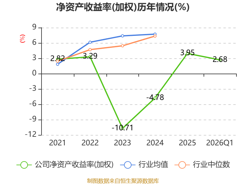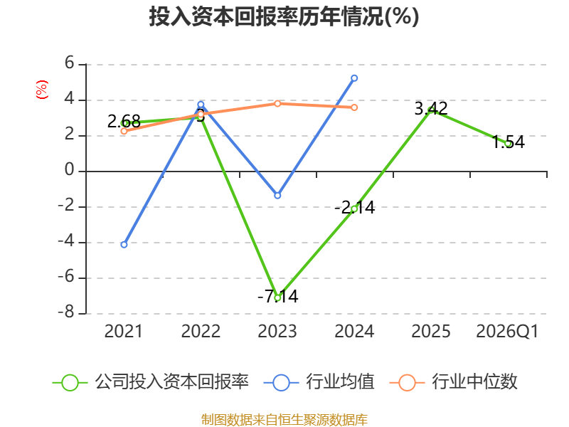 盈利能力方面, 2026年一季度公司加权平均净资产收益率为2.68%,同比上升2.24个百分点。公司2026年第一季度投入资本回报率为1.54%,较上年同期上升1.64个百分点。