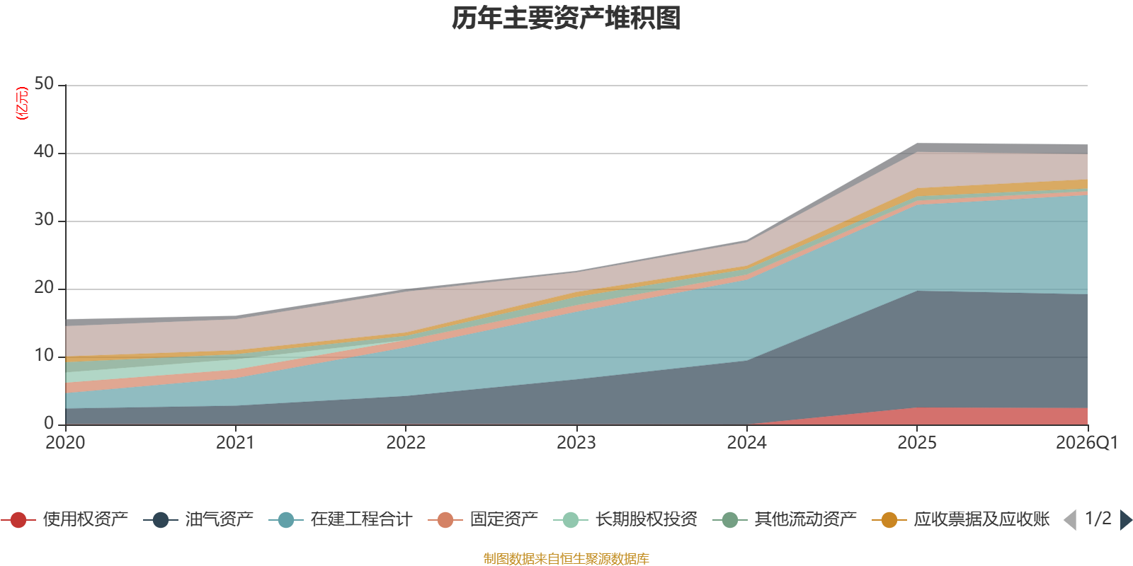 资产重大变化方面,截至2026年一季度末,公司在建工程合计较上年末增加15.46%,占公司总资产比重上升4.9个百分点;货币资金较上年末减少30.4%,占公司总资产比重下降3.87个百分点;油气资产较上年末减少2.53%,占公司总资产比重下降0.85个百分点;其他流动资产较上年末减少40.06%,占公司总资产比重下降0.61个百分点。