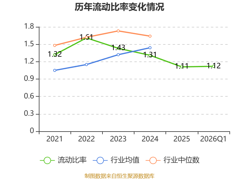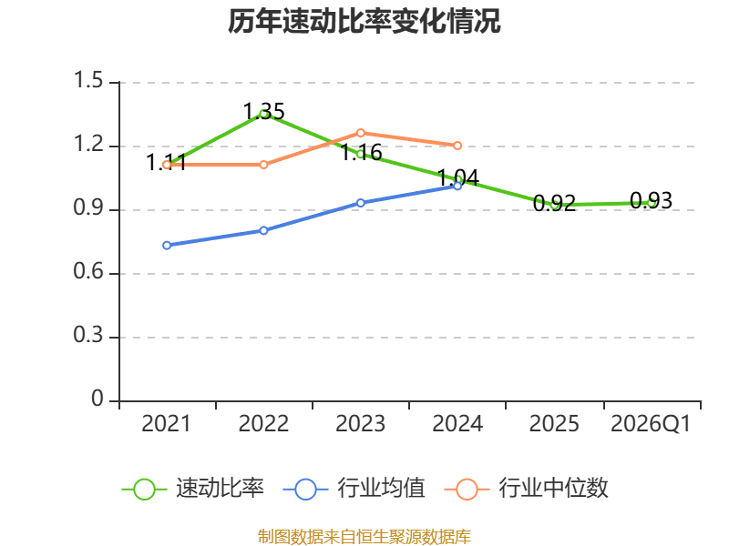 2026年第一季度,公司流动比率为1.12,速动比率为0.93。