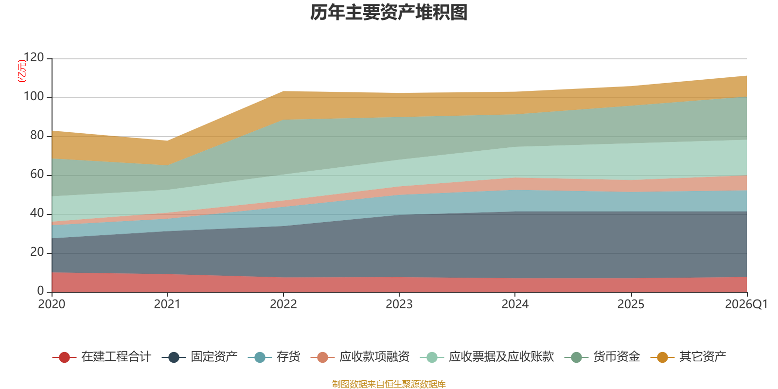 资产重大变化方面,截至2026年一季度末,公司固定资产较上年末减少1.82%,占公司总资产比重下降2.13个百分点;货币资金较上年末增加14.63%,占公司总资产比重上升1.67个百分点;应收票据及应收账款较上年末减少2.69%,占公司总资产比重下降1.31个百分点;应收款项融资较上年末增加25.16%,占公司总资产比重上升1.12个百分点。