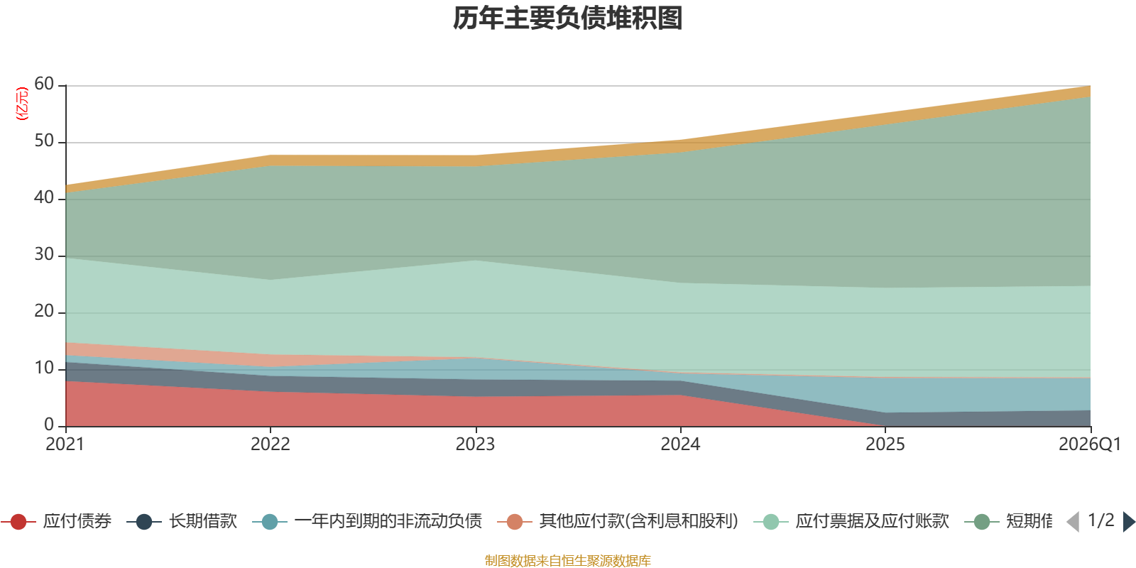 负债重大变化方面,截至2026年一季度末,公司短期借款较上年末增加15.77%,占公司总资产比重上升2.77个百分点;一年内到期的非流动负债较上年末减少7.29%,占公司总资产比重下降0.68个百分点;应付票据及应付账款较上年末增加2.45%,占公司总资产比重下降0.37个百分点;长期借款较上年末增加17.56%,占公司总资产比重上升0.26个百分点。