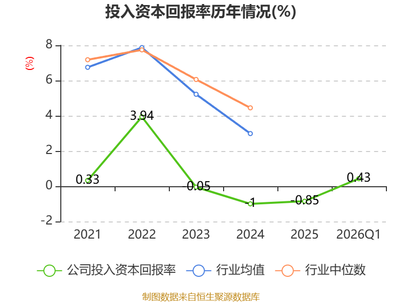盈利能力方面, 2026年一季度公司加权平均净资产收益率为0.43%,同比上升0.56个百分点。公司2026年第一季度投入资本回报率为0.43%,较上年同期上升0.19个百分点。