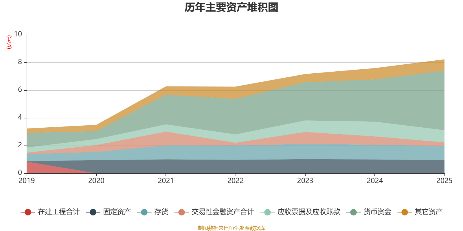 资产重大变化方面,截至2025年末,公司货币资金较上年末增加41.49%,占公司总资产比重上升12.26个百分点;交易性金融资产合计较上年末减少56.96%,占公司总资产比重下降4.78个百分点;应收票据及应收账款较上年末减少17.08%,占公司总资产比重下降3.3个百分点;其他非流动资产较上年末增加2375.55%,占公司总资产比重上升2.35个百分点。