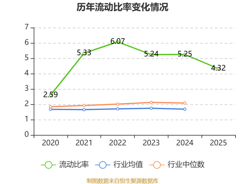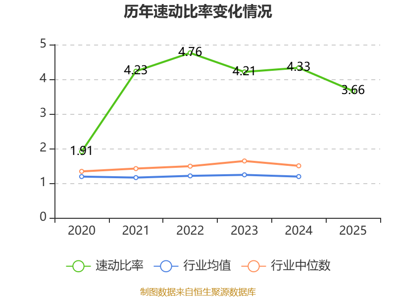 2025年,公司流动比率为4.32,速动比率为3.66。