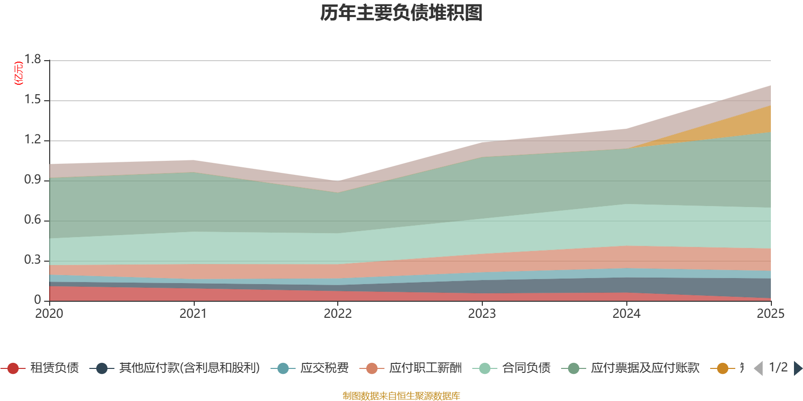 负债重大变化方面,截至2025年末,公司短期借款占公司总资产的2.43%,上年末为0;应付票据及应付账款较上年末增加36.89%,占公司总资产比重上升1.43个百分点;租赁负债较上年末减少69.68%,占公司总资产比重下降0.58个百分点;合同负债较上年末减少1.85%,占公司总资产比重下降0.39个百分点。