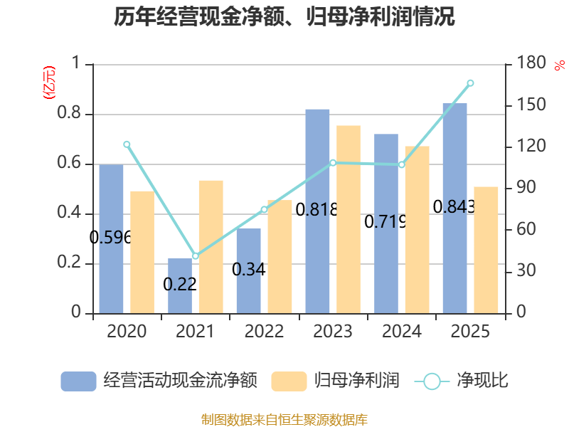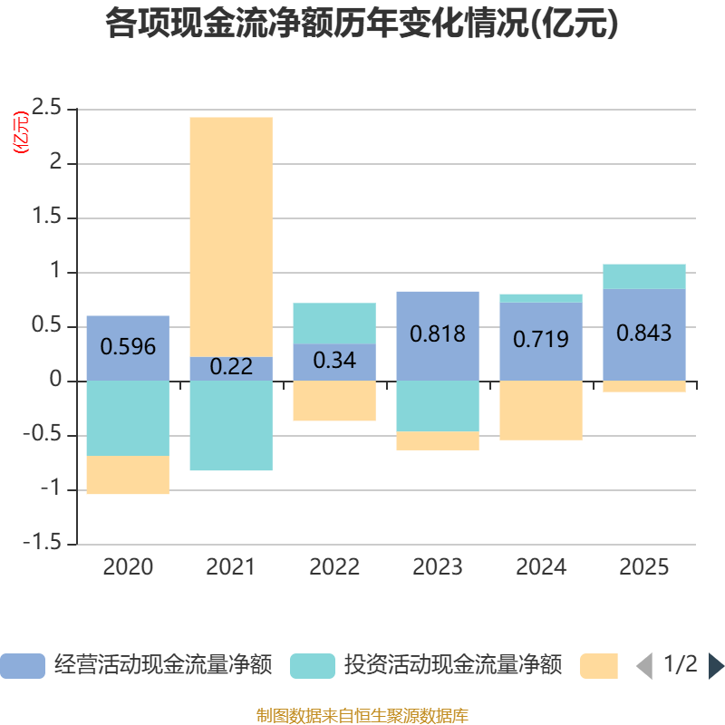 截至2025年,公司经营活动现金流净额为8428.58万元,同比增长17.22%;筹资活动现金流净额-1054.72万元,同比增加4429.69万元;投资活动现金流净额2273.03万元,上年同期为745.45万元。