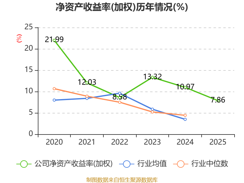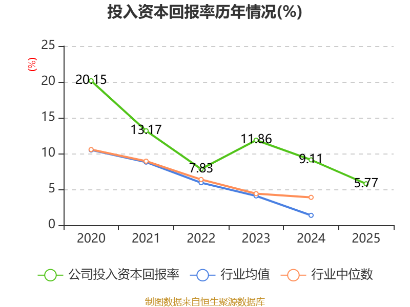 数据显示,2025年公司加权平均净资产收益率为7.86%,较上年同期下降3.11个百分点。公司2025年投入资本回报率为5.77%,较上年同期下降3.34个百分点。