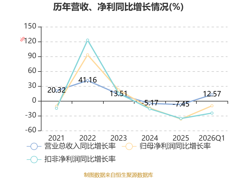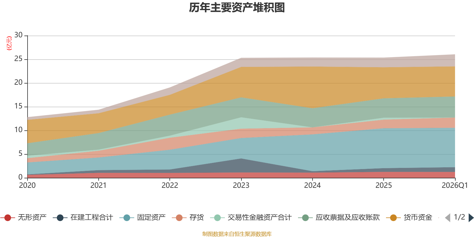 资产重大变化方面,截至2026年一季度末,公司其他非流动资产较上年末增加331.49%,占公司总资产比重上升1.6个百分点;交易性金融资产合计较上年末减少100%,占公司总资产比重下降1.58个百分点;货币资金较上年末减少2.99%,占公司总资产比重下降1.44个百分点;固定资产较上年末减少1.33%,占公司总资产比重下降1.32个百分点。