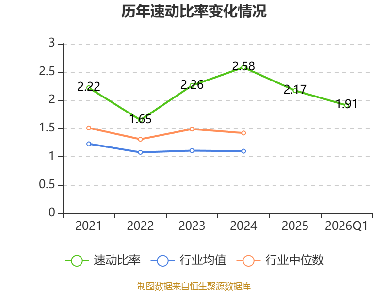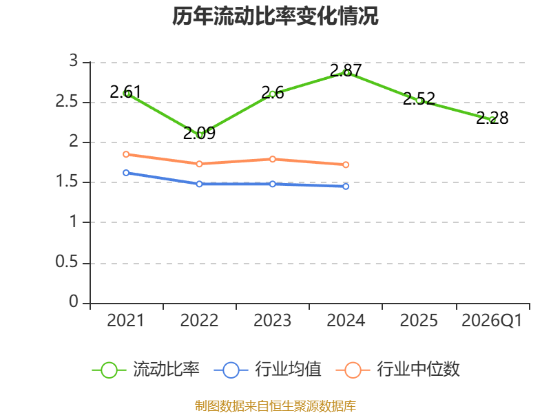 2026年第一季度,公司流动比率为2.28,速动比率为1.91。