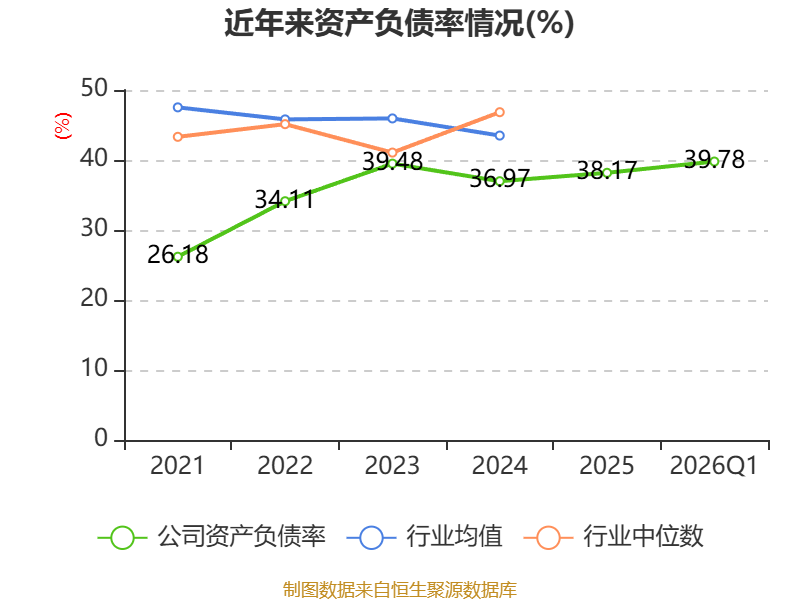 负债重大变化方面,截至2026年一季度末,公司应付票据及应付账款较上年末增加26.54%,占公司总资产比重上升3.62个百分点;应付职工薪酬较上年末减少56.02%,占公司总资产比重下降1.63个百分点;应付债券较上年末增加1.15%,占公司总资产比重下降0.25个百分点;应交税费较上年末减少15.59%,占公司总资产比重下降0.1个百分点。