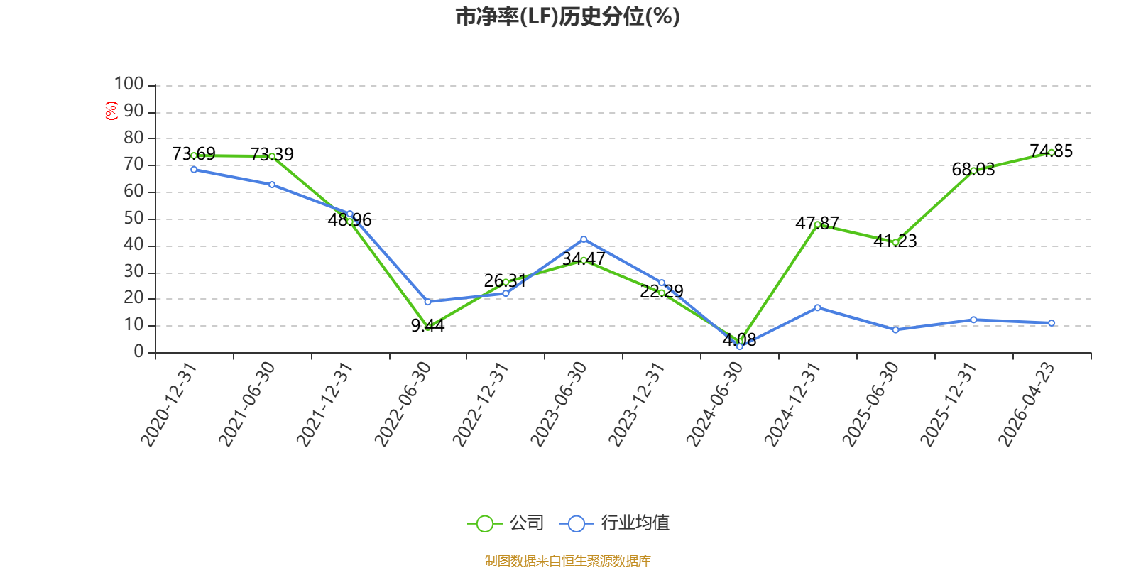 市盈率、市净率为负时,不显示当期分位数,会导致折线图中断。